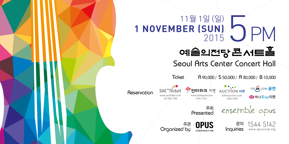 conductor - Seojin 1st Violin - Juyoung baek, Hyuk Joo Kwun, Seyoung Lee, Soo Ryun Baek, Yoon Jung Yang, Yeoeun Choi, Jihye Byun 2nd Violin - Regis Pasquier, Hanah Chung, Marisol Lee, Sung Chul Kim, Eun Jung Lee, Min JI Son Viola - Sang Jin Kim, Erwan Richard, Hanna Lee, So-hee Yun Cello - Arto Naras, Min Ji Kim, Jung Ran Lee, Soyun Kim Double basse - Minje Sung, Inseon Shin